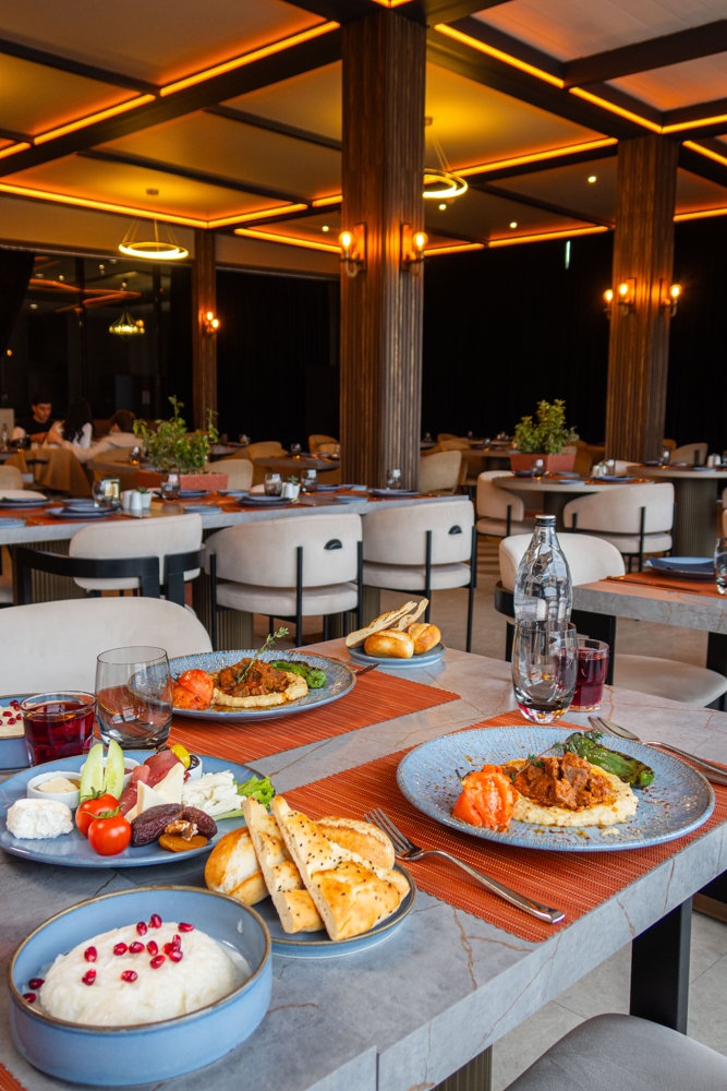 Modern mimari tasarım, geleneksel Türk misafirperverliği ile harmanlanır. Işıltılı avizeler altında hazırlanan sofralar, estetik ve sıcaklığı bir arada sunar.